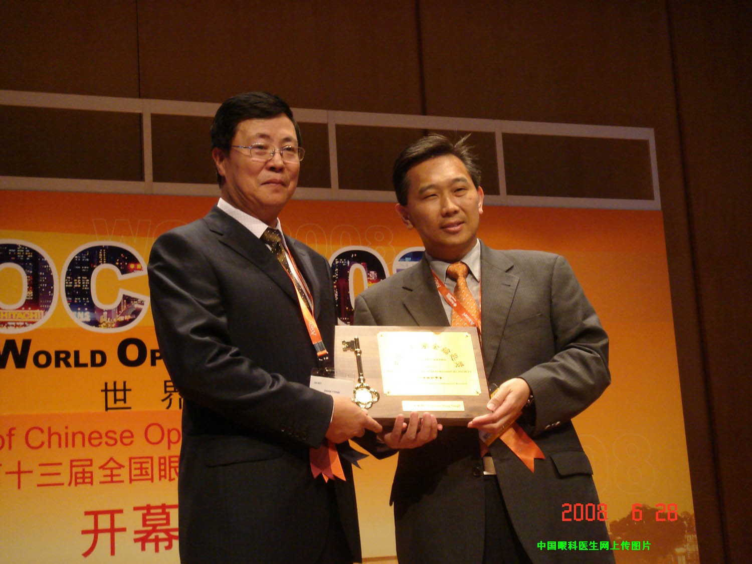 (▲上图为:王宁利教授获中美眼科学会金钥匙奖