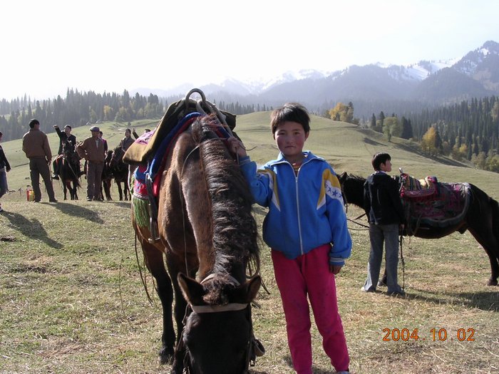 马的主人-哈萨克小姑娘,小姑娘不会汉语,所以无法语言交流。我非常惭愧我这么一个成人还需要小女孩牵马(骑马的水平太差),也很同情她为了生活不得不在小小年龄就出来工作。结束的时候我把我身上带的所有吃的东西都送给了她(最初想给钱,又担心最后只成为大人的收益而孩子并没有好处)。
