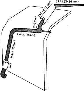 In a series of 90 cases of temporal bone fractures reported by Cannon and Jahrsdoerfer,83 ecchymosis over the mastoid (Battle's sign) was present in 8 patients. This sign is usually seen when the skull base is fractured and results from blood extravasated along the course of the posterior auricular artery. In longitudinal fractures, rupture of the tympanic membrane is common with associated CSF otorrhea and hemotympanum. Transverse fractures can also cause hemotympanum but are rarely associated with rupture of the tympanic membrane and bleeding from the external canal. The facial nerve is also subject to trauma as it exits the stylomastoid foramen, where it may be impaired by blunt force, knife wounds, or local infiltration of an anesthetic. Surgical exploration and possible repair in acute traumatic paralysis are indicated in selected cases when the nerve has been crushed, stretched, or transected. Such an injury is likely in cases of temporal bone fracture that have a sudden and complete onset of paralysis, that have displacement of the temporal bone fragments noted by computed tomography (CT) scan, and that have lost the electrical response to stimulation by the fifth day. Surgical exploration in such cases should be undertaken as the patient's condition permits. If an injury occurs accidentally during surgery, repair should be performed at that time. |