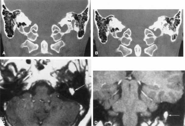 lesions, and meningiomas.84 Other lesions that may affect the nerve in the temporal bone are glomus