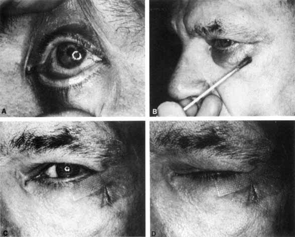 directed up and laterally; it is secured laterally to the orbital rim (Fig. 27). In this fashion, the irritation to the palpebral conjunctiva, caused