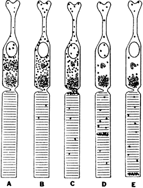 membrane, where it ends as microvilli (the fiber basket of Schultze) projecting