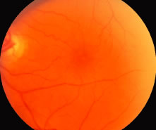 Soon after, spontaneous vitreofoveal separation may occur. The contracted prefoveolar vitreous cortex (now detached from the underlying retina) may become visible as a semitranslucent prehole opacity (pseudo-operculum) lying anterior to a small foveolar hole. This condition is classified as a stage 2 full-thickness macular hole (Fig. 5). Centrifugal retraction of foveolar retinal receptors continues to enlarge the diameter of the hole; Gass suggested that any hole 400 μm or larger should be classified as a stage 3 macular hole (Fig. 6). After separation of the vitreous from the entire macula and optic disc, the hole is classified as stage 4, regardless of its diameter. Recently, the introduction of optical coherence tomography (OCT) has allowed researchers to study the exact relationship between the vitreous and fovea in the development of macular holes. OCT is analogous to ultrasound but measures optical, rather than acoustic, reflectivity (Fig. 7). The higher frequency of light waves compared with acoustic waves allows for a much higher longitudinal resolution (10 μm vs. 150 μm). OCT evidence suggests that in most macular holes, the first step is actually the formation of a foveal pseudocyst (splitting of the retina at the fovea). It is postulated that anterior tractional forces from the prefoveal vitreous cortex cause this pseudocyst to form. The anterior wall of this cyst serves as a flap in stage 2 holes and as an operculum in stage 3 holes.15,16 |