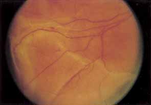 Vitreous traction may also cause focal areas of retinoschisis that may be difficult to distinguish from full-thickness traction retinal detachment. In retinoschisis the elevated layer is thinner and more translucent (Fig. 17).