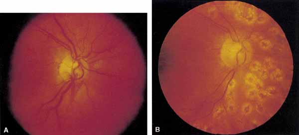 DURATION OF DIABETES The best predictor of diabetic retinopathy is the duration of the disease.21–28 Patients who have had type 1 or insulin-dependent diabetes mellitus (IDDM) for 5 years or less rarely show any evidence of diabetic retinopathy.27,29 However, 27% of those who have had diabetes for 5 to 10 years and 71% to 90% of those who have had diabetes for longer than 10 years have diabetic retinopathy.30 After 20 to 30 years, the incidence rises to 95% and approximately one-third to one-half of these patients have PDR.29 Determining the role of duratioo of diabetes as a predictor of retinopathy in type 2 or noninsulin dependent diabetes mellitus (NIDDM) is more difficult because of the uncertainty of the onset in many patients. In some, the diagnosis of diabetes is made only after retinopathy is discovered. With these limitations, the best studies are from Wisconsin and Israel. Yanko and co-workers30 found that the prevalence of nonproliferative retinopathy 11 to 13 years after the onset of type 2 diabetes was 23%. After 16 or more years, it was 60%. Eleven or more years after the onset, 3% of the patients had proliferative retinopathy. Klein found that 10 years after the diagnosis of type 2 diabetes, 67% of patients had retinopathy and 10% had PDR. The risk was lowest in patients who did not require insulin.31 AGE OF THE PATIENT Although the duration of diabetes is the most important determinant of retinopathy, the years that a patient has diabetes before the onset of puberty do not count against him or her. In other words, the risk of retinopathy is roughly the same in two 25 year-old patients, one of whom developed type 1 at the age of 6 and the other of whom developed it at age 12 or 13.21,25,28 SYSTEMIC FACTORS Control of Blood Glucose The decades-old controversy regarding whether or not intensive metabolic control prevents the development or progression of retinopathy was finally laid to rest by the Diabetes Control and Complications Trial (DCCT) 31,32 and the United Kingdom Prospective Diabetes Study (UKPDS).33 In the DCCT, patients who closely monitored their blood glucose and who were treated with insulin at least three times per day by injection or by insulin pump were compared to patients treated with conventional therapy. The intensive-treatment group had a 76% reduction in the rate of development of any retinopathy and an 80% reduction in progression of established retinopathy. Ophthalmologists must be aware that after institution of strict control, there is often an initial worsening of preproliferative retinopathy.36–38 Fortunately, after 2 years of control, the strict-control groups had the same or less retinopathy than groups treated conventionally.39 The UKPDS was a randomized, controlled clinical trial involving newly diagnosed type 2 diabetics. Patients were randomly assigned to intensive glycemic control with sulfonylurea agents or insulin or to conventional control with diet. After 12 years of follow-up, progression of diabetic retinopathy in the intensive-control group was reduced by 21%.34 The benefits of rigorous control of blood glucose do not extend to all eyes with advanced retinopathy. Even patients who are made normoglycemic by pancreatic transplantation continue to show progression.40 Renal Disease Most patients with renal disease, as evidenced by proteinuria, elevated blood urea nitrogen (BUN), and elevated blood creatinine, also have retinopathy.28,41–43 Even patients with microalbuminuria are at high risk of having retinopathy.44–48 On the other hand, only 35% of patients with symptomatic retinopathy have proteinuria, elevated BUN or elevated creatinine.49 Systemic Hypertension The literature indicates that elevated systolic blood pressure is a moderate risk factor for diabetic retinopathy.28,42,43,50 Other studies have found, however, that when patients with nephropathy are excluded, blood pressure is not a strong risk factor.51–53 The Hypertension in Diabetes Study (HDS), part of the UKPDS, evaluated the effect blood pressure control on the progression of diabetic retinopathy. Patients who were kept under strict control of blood pressure (< 150/85 mm Hg) had a 34% risk reduction in microvascular changes compared to the conventional blood pressure control group (< 180/105).54 For every 10-mm Hg reduction in systolic blood pressure there was an associated 13% reduction of microvascular end points. Lisinopril, an angiotensin-converting enzyme inhibitor, has been shown in another study to decrease by 50% the progression of NPDR in normotensive type 1 diabetics; suggesting a benefit for some antihypertensives independent of there blood pressure lowering effect.55 Pregnancy Women with diabetes who begin a pregnancy with no retinopathy have a 10% to 26% risk of developing some NPDR.56–58 Those who have NPDR at the onset of pregnancy and those who have low hemoglobin or systemic hypertension tend to show accelerated progression, with increased hemorrhages, cotton-wool spots and macular edema.58–60 Fortunately, there is usually some regression of NPDR after delivery.61–63 Women who begin pregnancy with NPDR have a 22% to 40% incidence of progression to PDR.58,61,64 Those with untreated PDR at the onset frequently do poorly unless they are treated with aggressive panretinal photocoagulation (PRP),65,66 but those with previously treated PDR usually do well. There is no doubt that women who maintain good metabolic control during pregnancy have fewer spontaneous abortions and fewer children with birth defects.67 Therefore, obstetricians strive for strict control. However, women who begin pregnancy with poorly controlled diabetes who are suddenly brought under strict control frequently have severe deterioration of their retinopathy and do not always recover after delivery.56,59,62,68 It is probably best to gradually bring the blood glucose under control. Race Retinopathy is more likely to be present in blacks than in whites.69 Moreover, blacks h