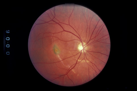 If the choroidal rupture is under the foveola or if an associated subretinal hemorrhage extends under the foveola, the visual prognosis is generally poor (Fig. 22); however, a recent study showed that even patients with foveal or multiple choroidal ruptures can regain good central vision after extended follow-up.86 If the rupture is elsewhere the prognosis is good because the overlying nerve fiber layer is almost never torn. Therefore, a rupture can be located between the disc and the macula and yet not affect the visual acuity (Fig. 21).