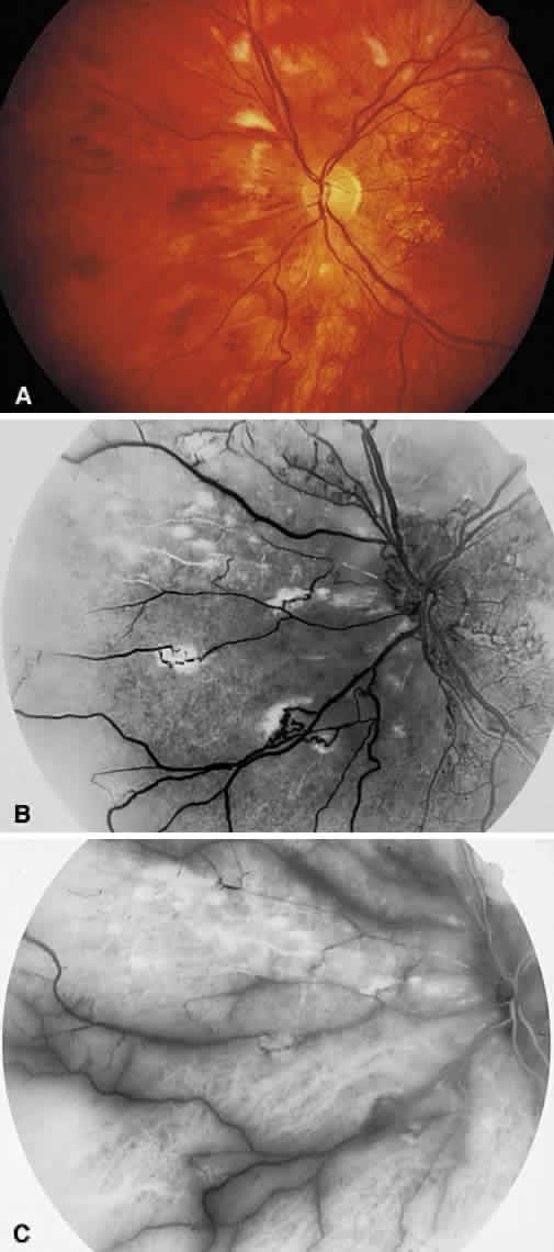 disc. Chee15 and Gass21 report the microvascular changes of capillary closure, microaneurysm formation, telangiectasia, and associated intraretinal edema and exudation. In
