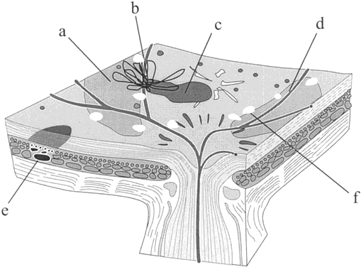 Radiation-induced optic papillopathy is another complication, presumably caused by ischemic damage to the small-caliber blood vessels that supply the optic nerve head.19 These blood vessels derive from the central retinal artery, the choroidal circulation, and penetrating branches from the posterior ciliary and ophthalmic arteries. The optic nerve head may be a watershed region particularly susceptible to ischemia. Radiation optic neuropathy is characterized acutely by the ophthalmoscopic appearance of a swollen optic disc, most often in conjunction with peripapillary hemorrhages, hard exudate, and subretinal fluid. Acute loss of vision often occurs. The disc swelling usually lasts for weeks to months, after which optic pallor may ensue.19 Optic disc pallor that is not preceded by disc swelling may be seen when radiation is directed at the optic chiasm.20 The ophthalmologic features of radiation optic neuropathy are illustrated in Figure 9. (Radiation optic neuropathy develops with doses similar to those encountered with radiation retinopathy without a neuropathic component. The latency period from the exposure to radiation usually parallels that of the retinopathy. Since the two are intimately related anatomically, most patients with radiation optic neuropathy also demonstrate at least minimal signs of radiation retinopathy. However, less than half of those afflicted with radiation retinopathy manifest optic neuropathy.19 The degree of visual loss from radiation optic neuropathy varies from mild to severe. Unlike decreased vision from retinopathy, the loss from optic neuropathy may partially reverse over weeks to months.19 The characteristic visual field defect appears to be a centrocecal scotoma.19 Ionizing radiation also can cause opacification of the crystalline lens.2 Classically, this begins as a posterior subcapsular plaque, which later becomes more diffuse and dense. |