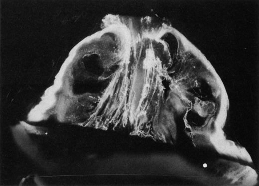 HYALOID VASCULAR SYSTEM The embryonic vascular system of the vitreous (vasa hyaloidea propria) and lens (tunica vasculosa lentis) attains its maximum prominence during the ninth week of gestation or 40-mm stage.1 Atrophy of the vessels begins posteriorly with dropout of the vasa hyaloidea propria, followed by the tunica vasculosa lentis. Recent studies have detected the onset of apoptosis in the endothelial cells of the tunica vaculosa lentis as early as day 17.5 in the mouse embryo.2 At the 240-mm stage (seventh month) in the human, blood flow in the hyaloid artery ceases.3 Regression of the vessel itself begins with glycogen and lipid deposition in the endothelial cells and pericytes of the hyaloid vessels.3 Endothelial cell processes then fill the lumen, and macrophages form a plug that occludes the vessel. The cells in the vessel wall then undergo necrosis and are phagocytized by mononuclear phagocytes.4 Gloor5 claimed that macrophages are not involved in vessel regression within the embryonic vitreous but that autolytic vacuoles form in the cells of the vessel walls, perhaps in response to hyperoxia. Interestingly, the sequence of cell disappearance from the primary vitreous begins with endothelial and smooth muscle cells of the vessel walls, followed by adventitial fibroblasts and lastly phagocytes,6 consistent with a gradient of decreasing oxygen tension. Recent studies have suggested that the vasa hyaloidea propria and the tunica vasculosa lentis regress via apoptosis.7 These studies concluded that macrophages are important in this process. Subsequent studies by a different group confirmed the importance of macrophages in promoting regression of the fetal vitreous vasculature and further characterized these macrophages as hyalocytes.8 It is not known what stimulates regression of the hyaloid vascular system, but studies have identified a protein native to the vitreous that inhibits angiogenesis in various experimental models.9–11 Activation of this protein and its effect on the primary vitreous may be responsible for the regression of the embryonic hyaloid vascular system as well as the inhibition of pathologic neovascularization in the adult. Mitchell and colleagues12 point out that the first event in hyaloid vasculature regression is endothelial cell apoptosis and propose that lens development separates the fetal vasculature from vascular endothelial growth factor (VEGF)-producing cells, decreasing the levels of this survival factor for vascular endothelium, inducing apoptosis. Following endothelial cell apoptosis, there is loss of capillary integrity, leakage of erythrocytes into the vitreous, and phagocytosis of apoptotic endothelium by hyalocytes. Meeson and colleagues13 proposed that there are actually two forms of apoptosis that are important in regression of the fetal vitreous vasculature. The first (“initiating apoptosis”) results from macrophage induction of apoptosis in a single endothelial cell of an otherwise healthy capillary segment with normal blood flow. The isolated dying endothelial cells project into the capillary lumen and interfere with blood flow. This stimulates synchronous apoptosis of downstream endothelial cells (“secondary apoptosis”) and ultimately obliteration of the vasculature. Removal of the apoptotic vessels is achieved by hyalocytes. Pathology Regression of the hyaloid artery usually occurs completely and without complications. Persistence of the hyaloid vascular system occurs in 3% of full-term infants but in 95% of premature infants14 and can be associated with prepapillary hemorrhage.15 Anomalies involving incomplete regression of the embryonic hyaloid vascular system occur in more than 90% of infants born earlier than 36 weeks of gestation and in over 95% of infants weighing less than 5 lb at birth.16 There is a spectrum of disorders resulting from persistence of the fetal vasculature.17 Mittendorf's dot is a remnant of the anterior fetal vascular system located at the former site of anastomosis of the hyaloid artery and tunica vasculosa lentis. It is usually inferonasal to the posterior pole of the lens and is not associated with any known dysfunction. Bergmeister's papilla is the occluded remnant of the posterior portion of the hyaloid artery with associated glial tissue. It appears as a gray, linear structure anterior to the optic disc and adjacent retina and does not cause any known functional disorders. Exaggerated forms can present as prepapillary veils. Vitreous cysts are generally benign lesions that are found in eyes with abnormal regression of the anterior18 or posterior19 hyaloid vascular system; otherwise normal eyes20,21; and eyes with coexisting ocular disease, such as retinitis pigmentosa22 and uveitis.23 Some vitreous cysts contain remnants of the hyaloid vascular system,24 supporting the concept that the cysts result from abnormal regression of these embryonic vessels.25 However, one histologic analysis of aspirated material from a vitreous cyst purportedly revealed cells from the retinal pigment epithelium.26 Vitreous cysts are generally not symptomatic and thus do not require surgical intervention. However, argon laser photocoagulation has been employed, and a recent report27 described the use of neodymium:yttrium-aluminum-garnet (Nd:YAG) laser therapy to rupture a free-floating posterior vitreous cyst. Persistent hyperplastic primary vitreous (PHPV) was first described by Reese28 as a congenital malformation of the anterior portion of the primary vitreous appearing as a plaque of retrolental fibrovascular connective tissue. This tissue is adherent to the posterior lens capsule and extends laterally to attach to the ciliary processes, which are elongated and displaced centrally. Although 90% of cases are unilateral, many of the fellow eyes have Mittendorf's dot or other anomaly of anterior vitreous development.29 A persistent hyaloid artery, often still perfused with blood, arises from the posterior aspect of the