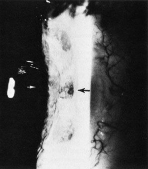 steroid use is prolonged. If the lens anomaly is the cause of the glaucoma or visual impairment resulting from cataractous changes is present, removal of the lens may be indicated. A peripheral iridectomy in the presence of a subluxated clear lens may relieve the glaucoma. The treatment of angle-contusion glaucoma is essentially the same as for open-angle glaucoma, regardless of age. If hyphema is present, a secondary glaucoma may result. This is more commonly seen in the eight-ball or total anterior chamber hemorrhage. In these patients, cataracts, either of posterior subcapsular or anterior subcapsular location, often are seen. Treatment is directed toward control of the bleeding. If blood staining of the cornea or intractable intraocular pressure ensues, irrigation of the chamber may be attempted. Various methods, including diathermy, fibrinolysis, and cryoextraction of the clot, have been tried in the treatment of this difficult problem.31 Essentially, treatment has to be individualized because there is no commonly accepted mode of therapy. |