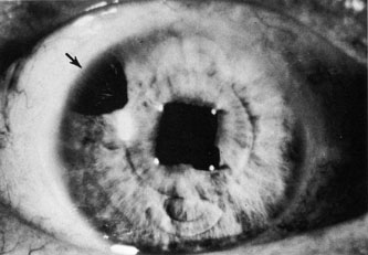 Pupillary block occurs quite frequently after the placement of an anterior chamber intraocular lens subsequent to cataract surgery (Fig. 10). Thus it is generally recommended to create a peripheral iridectomy at the time of surgery when placing an anterior chamber intraocular lens. Although rare, pupillary block glaucoma also can occur after posterior chamber intraocular lens implantation, even years after the original surgery.68