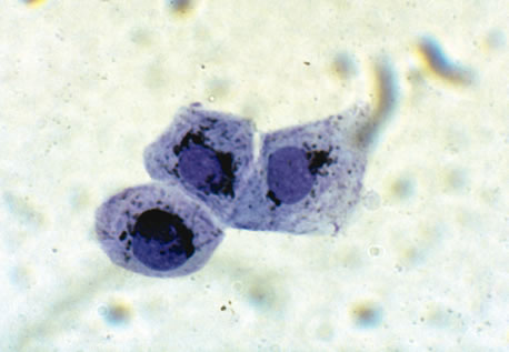 Certain bacteria are not readily visualized by Gram's stain, and may require other stains or types of microscopy for visualization. Mycobacteria are most easily visible using acid-fast stains such as the Ziehl-Neelsen stain. Intracellular Chlamydia are not directly visible with Gram's stain, and are generally visualized following Giemsa staining of intracellular inclusion bodies (Fig. 1). It is important to note that this Giemsa stain is the traditional 60-minute staining protocol; the brief Wright-Giemsa stain used for blood stains will not identify inclusion bodies. The Papanicolaou stain can also be used for the identification of Clamydia inclusions. Giemsa stain is also useful for the demonstration of Actinomyces and Nocardia species (which can also be seen on Gram's staining). Darkfield microscopy can be used to demonstrate the Treponema pallidum spirochete of syphilis, although serologic testing is more commonly performed to confirm infection. Serologic testing is more commonly performed to confirm the traditional 60-minute Giemsa staining protocol; the brief Wright-Giemsa stain used for blood stains will not identify inclusion bodies. The Papanicolaou stain can also be used for the identification of Chlamydia inclusions.