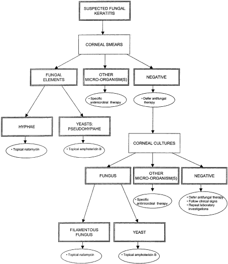 of the smears. If fungal elements alone are detected in corneal smears, initial