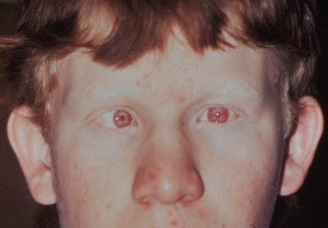 indoor occupations). The life expectancy of CHS patients is approximately 4.1 years. The management of patients with albinism should include a complete ophthalmic examination early in life. Also, an examination of the mothers of males with OA may reveal characteristic choroidal and RPE pigmentation pattern, indicating X-linked inheritance. High refractive errors should be corrected as early as possible, and amblyopia should be treated if present. For patients with poor best-corrected visual acuity without amblyopia, low-vision aids may be helpful. Most children with albinism enroll in regular school and perform well with some help, such as allowing them sit close to the board and providing large-print books as necessary.163 Extraocular muscle surgery is indicated in patients with strabismus or those with nystagmus and a null-zone associated face turn. Surgery should be modified if the strabismus is associated with congenital motor nystagmus or sensory nystagmus secondary to albinism. A pediatric or medical evaluation is recommended to identify associated systemic syndromes, especially in populations at high risk for HPS, such as natives of Puerto Rico. Genetic counseling is indicated. The input of mental health care providers is sometimes beneficial in promoting appropriate coping responses to the sometimes substantial psychological stigmata and sequelae of albinism. |