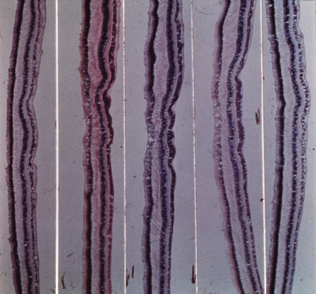 reduction in the number of rod photoreceptors, the underdevelopment