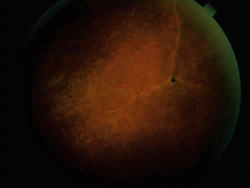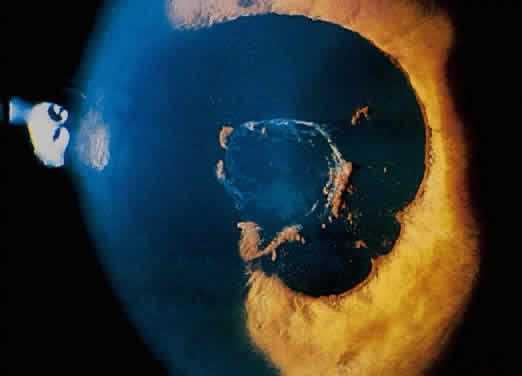 chamber contains a few cells. The anterior chamber angle is open throughout
