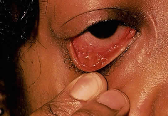 disease, and the clinical course may resemble other conditions. A simplified set of diagnostic criteria has been proposed based on the following six common clinical manifestations73: (1) recurrent aphthous stomatitis, (2) genital aphthous ulcers, (3) uveitis, (4) synovitis, (5) cutaneous vasculitis, and (6) meningoencephalitis. Diagnosis usually requires at least three of the six criteria, with aphthous ulceration being a necessary finding. Aphthous ulceration and one other criterion may be sufficient for diagnosis of incomplete forms.73 More rigid criteria have been proposed in Japan, where this disease is more common, and involves combinations of “major” and “minor” criteria for diagnosis of complete and incomplete forms of Behçet's disease.74,75 Briefly, the major signs are (1) recurrent aphthous ulcerations of the mouth, (2) skin lesions, (3) eye lesions, and (4) genital ulcerations. The minor signs are (1) arthritis, (2) gastrointestinal lesions, (3) epididymitis, (4) vascular lesions, and (5) central nervous system disease. For complete Behçet's disease, all of the four major lesions must be present. In the incomplete type, three of the four major criteria are present, or the patient has eye disease plus one other major criterion. International criteria require recurrent oral ulceration and two of the following: (1) recurrent genital lesions, (2) eye lesions, (3) skin lesions, or (4) positive pathergy.76,77 This disease is more common in Japan and in the eastern Mediterranean countries. It is reported to have a prevalence of 1 in 10,000 in Japan78 and to cause 15% of all cases of uveitis.79 It has been shown to occur in Minnesota at an incidence of 1 per 300,000 per year.78 In San Francisco it causes 0.4% of all cases of uveitis.80 It does not seem to occur frequently in Japanese-Americans.78 Behçet's disease has been shown in Japan to have a strong correlation with HLA-B5 and particularly the B5 split antigen B51.80 The ocular disease seems even more closely related to HLA-B5.81 Additional environmental factors seem to be involved. Men are more commonly affected than women in most series, and the disease is more common in young adults. Aphthous stomatitis and vulvitis alone in young girls or women are usually self-limiting and can be due to many causes besides Behçet's disease, even though they are necessary for the diagnosis of Behçet's disease. The ulcers in Behçet's disease are usually the first manifestation (70%) and resemble uncomplicated canker sores. They are frequently multiple, are painful, and heal in 3 to 30 days, usually without scar formation. Genital ulcers of the vulva and vagina in females and of the scrotum and penis in males are similar to the oral ulcers, but less painful.73 Arthritis occurs in 50% to 60% of patients and involves large and small joints. The knees and ankles are most commonly involved. Though recurrent, the arthritis is usually not destructive. Cutaneous lesions, including pustules, papules, and nodules, are thought to be related to vasculitis. Nodules resemble erythema nodosum, but unlike erythema nodosum, these may become ulcerated. A nonspecific condition resulting in formation of a pustule following a sterile needle stick has been called “pathergy” and has been reported to be as high as 40% in Behçet's disease.44 Others have not found this condition to be present. Fever, headache, neck stiffness, and cerebrospinal fluid pleocytosis is found along with the meningoencephalitis. Bacterial and other causes must be ruled out.73,82,83 Studies, including inoculations of cerebrospinal fluid into rabbits and posterior uveal tissue into chorioallantoic membrane then passed into mice, causing encephalitis, have suggested a viral cause.84–86 Abnormalities in the immune system have been reported, but as yet have failed to give a comprehensive explanation for the disease process. Immune complex disease would be compatible with a drop in complement just before a flare of the intraocular inflammation and has been shown to occur, suggesting activation of complement pathways.87 Abnormalities in the secretory component of IgA in saliva and gastrointestinal secretions have been reported and should suggest an abnormality that might allow a foreign antigen to gain access to the circulation.88 There are reports that the disease can be activated by certain foods, such as English walnuts.89 The presence of damaged membrane fragments, presumably from complement activity on the cell wall,90 helps to implicate this cellular damage in the rapid onset of symptoms and probably plays a role in hypopyon and vascular occlusive events observed in the eye.81 Heat shock proteins from Streptococcus sanguis or other bacterial agents have also been implicated,82 and antibodies against ocular and oral antigens have been reported.83 The acute iridocyclitis is suggestive of vascular occlusive changes, or acute tissue damage, with sudden onset and massive outpouring of cells into the anterior chamber or vitreous (Fig. 10). Vascular injection is not as pronounced as the number of cells in the anterior chamber or vitreous would suggest, and protein in the anterior chamber may be minimal. The cells settle to the dependent portion of the anterior chamber, forming a hypopyon. There may be little tendency toward formation of keratic precipitates. The process may be unilateral or bilateral. Episodes usually are recurrent, and recurrences produce increased tissue damage, progressing to more chronic involvement. All vascular tissues of the eye may become involved, including episcleritis, scleritis, iridocyclitis, retinal and choroidal vasculitis, and optic neuritis. Retinal focal ischemic areas of edema and optic nerve edema (Fig. 11) are seen in the acute phases, and retinal and optic nerve atrophy along with retinal pigment epithelial changes resembling secondary retinitis pigmentosa, attenuation, and sheathing of retinal vessels are seen in the later stages of ocular in