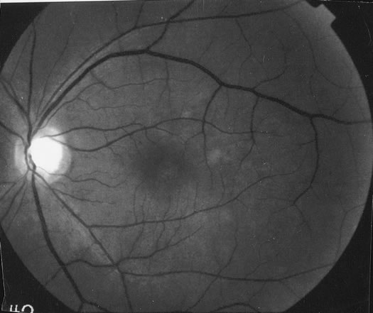 field loss and normal retina. There are no discernible retinal findings