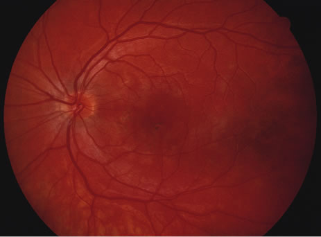 HISTORY AND CLASSIC FINDINGS Acute macular neuroretinopathy is a rare entity and can either be unilateral or bilateral. It usually affects young women who have had previous flu-like illness. They notice photopsias. The vision can be normal or slightly reduced. There are no cells noted in the vitreous and the optic nerve does not appear swollen. There are wedge-shaped reddish-brown lesions in the macular area that are most noticeable by using red-free photography. The fluorescein angiograms are unremarkable. The visual field may show a paracentral scotoma that corresponds to the shape of the lesion seen by ophthalmoscopy. Electrophysiologic testing is unremarkable. The scotoma and the photopsias usually show some but not complete improvement. There have been cases patients with MEWDS that have developed lesions of acute macular neuroretinopathy so there is some thought that this may be part of the spectrum of MEWDS and AIBSE.99 Recurrences are extremely rare and there is no evidence of chorioretinal scarring with resolution of the acute macular neuroretinopathy. |