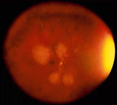 a malignant lymphoma on the basis of ocular examination. Lymphoma can