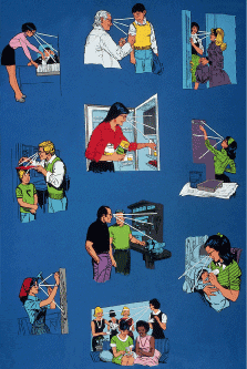 The Department of Defense uses an armed forces visual screener—Bausch & Lomb Ortho-Rater manufactured to specifications by Stereo Optical Company (Chicago, IL) Armed Forces tester Model 2300 AFUT Vision Tester. Other instruments currently in use but not being manufactured at the present time include Bausch & Lomb and American Optical instruments previously described. The tests may be provided through individual separate instruments. In specific types of occupational testing, for example, Department of Transportation (DOT), Federal Aviation Administration (FAA), Federal Railroad Administration (FRA), and maritime industry, as well as the military, the Farnsworth Lantern (now Stereo Optical Co. Model 900) is required when the individual fails the Ishihara color screening plates. EYE EXAMINATIONS FOR ENVIRONMENTAL AND MEDICAL SURVEILLANCE Environmental health programs may involve activities designed to ensure that employees, customers, and the public are adequately protected from health hazards associated with a company's operations.59 Hazards may include conditions, other than indoor air contaminants, that cause stress, discomfort, or health problems. Environmental monitoring provides for the systematic collection, analysis, and evaluation of environmental samples, such as air, to determine contaminant levels to which workers are exposed. Medical surveillance programs may include detailed physical examinations to recognize a specific effect.59 Some environmental hazards may be associated with changes in visual functions resulting in abnormalities on screening. Solvent exposure, for example, has been associated with changes in the retina and optic nerve resulting in an acquired change in decreased contrast sensitivity and acquired color vision defects, starting first with yellow-blue and proceeding to red-green. Current work at Environmental Protection (EPA) is evaluating contrast sensitivity in neurotoxicity. |