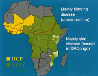 Over the years mass treatment has evolved from mobile strategies used in the early days following ivermectin donation,5 to various forms of community-based treatment of which community directed treatment with ivermectin (CDTI) is not only the latest but also the least expensive and the most likely to be sustainable.57 This is now the preferred method used throughout Africa by both OCP and APOC. Its main strength is the extent to which affected communities are involved at all stages of treatment activities; it ensures that the highest treatment coverage is achieved at each round. Recent reports have drawn attention to the rare occurrence of severe and sometimes life-threatening adverse reactions after ivermectin in those who are infected with O. volvulus and Loa loa.58 Care must be taken when using ivermectin in areas where Loaiasis is known to be endemic.59 |