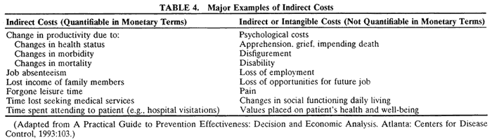 Direct costs account for such items as hospitalizations, drugs costs, physician's fees, laboratory costs, rehabilitation, and long-term care costs. Direct costs come in the form of charges, and the true medical costs may be obscured or difficult to measure, since they do not empirically measure the forgone opportunity cost of using these resources for other purposes. Direct costs can either be fixed (e.g., land or capital) or variable costs (e.g., labor). Costs such as hospital buildings, for example, are assumed to be inflexible in the short run and, thus, are fixed. Variable costs are more flexible in the short term, that is, they can be increased or reduced with much greater ease, as in the case of hospital staffing needs. Patient-based costs are derived from “costs borne by patients and their families, (and include) out-of-pocket expenses, patient and family input into treatment, time lost from work, and “psychic costs” attributable to pain and suffering.”3 Nonmedical costs such as transportation and support for ancillary workers, homecare workers, and other out-of-pocket expenses may be included to gain an overall picture of the costs of a given healthcare intervention from the patient's perspective (Table 4). The next step is to measure the costs of the healthcare interventions or program being pursued.