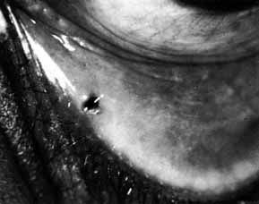 Flaccid Canaliculus Syndrome The flaccid canaliculus syndrome was described by Jones and Wobig.43 Involutional changes may produce a nasolacrimal system that appears open to irrigation. However, lid laxity and poor lacrimal pump function contribute to poor tear drainage. Horizontal shortening of the lid may help, but frequently, a Jones tube combined with DCR is required. Again, caution must be exercised to ensure that the patient does not have an underlying dry-eye problem. If so, reflex tearing will continue and the patient may be unhappy. Irritation from Lashes Trichiasis and distichiasis are causes of reflex tearing, as previously discussed. These problems can be managed by cryosurgery, electrolysis, or a variety of lid margin procedures. Likewise, entropion can cause reflex tearing secondary to lash irritation. Rotation of the lid margin or other standard entropion procedures can eliminate these causes of epiphora.46–49 TRAUMA Trauma can occur at any site in the nasolacrimal drainage system. The form of trauma can range from chemical and thermal burns to avulsions and lacerations. Burns Whatever the source of energy causing a burn, the treatment is much the same to repair punctal or canalicular stenosis. Silastic stenting is required more frequently when the initial injury was thermal. The stenting also must be left in place for much longer than the usual period. Lacerations Lacerations of the punctum are rare, and those to the sac alone can be repaired primarily. The most common form of laceration to the nasolacrimal drainage system is the canalicular laceration. The guiding principle in the repair of the canaliculus is to reestablish the patency of the damaged system. The surgeon should minimize further trauma to the nasolacrimal system and be cognizant of the cosmetic details. Use of the pigtail probe in the repair must be used cautiously because it can too easily damage the sac and common internal punctum. The operating microscope assists in visualization of the lacerated ends and is highly recommended for surgical management. If the surgeon is more comfortable with high-power loupes, use of the operating microscope may be unnecessary. In fact, loupes may be more advantageous because the surgeon may have a greater field of vision and more mobility while repairing the laceration. The proximal or lateral end is located easily by passing a probe through the punctum (Fig. 12A and 12B). The medial or distal end usually can be identified easily with the use of the magnification. When both upper and lower canaliculi are cut near the sac, identification may be difficult. When a single canaliculus is cut, the use of a milky white steroid–antibiotic suspension injected through the intact canaliculus can assist in locating a cut end. Air can be injected in a similar fashion under a pool of saline, and the resultant bubbles can assist in localizing the distal end. The use of the operating microscope under high power has made these maneuvers unnecessary in most cases.