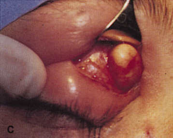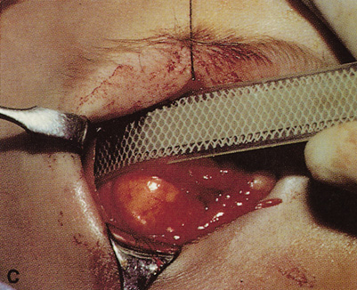 Whenever possible, it is preferable to approach orbital lesions without the increased operative time and potential morbidity associated with osteotomies and bone removal. Anterior lesions and many encapsulated deeper lesions in the lateral, superior, medial, or inferior orbit often can be approached without the need for bone removal. Each of these locations is addressed separately. |