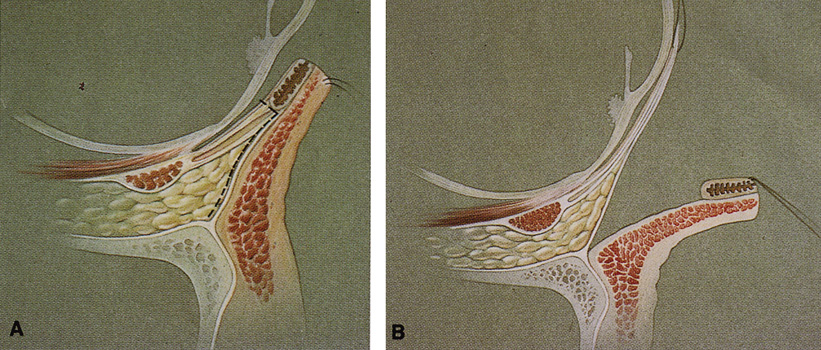 beneath the tarsal plate (Fig. 30). With any of these approaches, dissection can be carried inferiorly