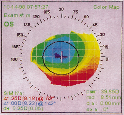 of all types of astigmatism. Wiesinger-Jendritza and associates reported a series of 23 eyes treated with LASIK using topography-based ablations for irregular astigmatism after penetrating keratoplasty, trauma, or previous excimer laser surgery.99 They found that 61.9% were partially corrected and 19.4% were fully corrected after the treatment. Improvements in this technique will likely be seen as topographic analysis becomes incorporated into the laser for real-time feedback on topographic changes during the ablation. Vinciguerra and Camesasca also have reported good results with a topography-based custom therapeutic treatment of highly aberrated eyes.100,101 In 52 eyes, the percentage with BSCVA of 20/30 or better increased from a preoperative rate of 59% to 88% at one postoperative year, and BSCVA of 20/15 was reached by 25% of eyes compared to none preoperatively. |