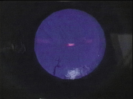 In 1983, Trokel and coworkers first reported the precise and controlled etching of the cornea by an argon–fluorine (ArF) excimer laser.28 Puliafito and colleagues compared the histopathologic effects of linear cornea ablation at 193 and 248 nm.29 Both studies found excellent preservation of normal corneal stromal microstructure adjacent to the ablation zone at 193 nm (Fig. 1). The adjacent cornea remained optically clear. High-power transmission electron microscopy showed a submicron zone of electron density immediately adjacent to the ablation only. Kerr-Muir and associates first described a pseudomembrane that appears to seal cells and cellular nuclei transected by the laser beam.30 In contrast, at 248 nm, disorganization of the collagen microstructure extended into the adjacent stroma for more than 10 νm.29 The cornea immediately adjacent to the ablation showed a loss of transparency, which was indicative of thermal injury. Further, a study by Peyman and associates31 showed a significant coagulative effect from 308-nm excimer laser radiation with induced corneal necrosis, stromal opacification, and endothelial cell damage. Krueger and associates quantitated ablation rates. Etch depth per pulse plotted against radiant energy density generated sigmoid curves.32,33 The steep portion of the curve is approximately logarithmic; this finding corresponds to observations in simpler organic polymers. The inflection point of the curve is approximately 200 mJ/cm2 for 193 nm, which represents the energy density yielding the most efficient ablation. Puliafito and colleagues postulated that ablation at the inflection points may be clinically undesirable; at the inflection point small changes in laser output could alter the ablation rate dramatically.34 Ablation at higher energy densities, such as 400 to 600 mJ/cm2 per pulse, where the ablation rate has the flattest slope, might be preferable in situations where ablation rate is critical. Krueger and coworkers33 further observed that for wavelengths higher than 193 nm, the threshold for corneal ablation increases as the laser repetition rate decreases. At 193 nm, the threshold was constant despite varying repetition rates. This observation is consistent with the photochemical theory of excimer corneal ablation, in which the buildup of heat does not play an important role at 193 nm and thermal mechanisms of ablation are important for ablation at longer wavelengths. The effect of radiation density on corneal smoothness remains controversial. Fantes and Waring showed improved corneal surface uniformity with their scanning system at higher laser energy density, especially with 500 mJ/cm2 per pulse.35 In contrast, Berns and coworkers observed that such high levels of energy can be associated with ridges on the corneal surface, damage to the endothelium, and the formation of small pits on the stromal surface inside the linear ablation zones.36 Endothelial toxicity probably is minimal, although endothelial effects can be seen despite the nearly complete absorption of 193 nm photons within 1 microns of tissue. Dehm and coworkers found that in linear ablations, 193-nm incisions to 90% of corneal depth produced endothelial membrane disruption similar to that seen underlying diamond knife incisions at the same depth.37 Frank loss of endothelial cells underlying the incision was observed at 248 nm. Hanna and coworkers observed the appearance of electron-dense granules in the endothelium after surface ablation of rabbit corneas at 193 nm.38 These electron-dense granules migrated through Descemet's membrane over several weeks and then dissipated. The clinical significance of this observation is unclear. This phenomenon may be related to transient pressure injury to the endothelium. Zabel and colleagues measured pressures as high as 100 atm at the endothelium during ablation of the superficial stroma, but no frank disruption of the corneal endothelium occurred.39 The fragments ejected from the corneal surface are visible several hundred nanoseconds after the laser exposure. For 193-nm irradiation, the particles travel at an initial velocity of approximately 400 m/sec for the first 500 nsec, but then rapidly decelerate. The ejection of the particles ends within 5 to 15 νsec as the decelerating particles form a mushroom-shaped cloud (Fig. 2). 40 Increased exposure energy leads to increases in both the plume size and initial velocity of the ejected fragments. Analysis of the plume has identified numerous molecules that contain between 10 and 20 carbon atoms.41 |
