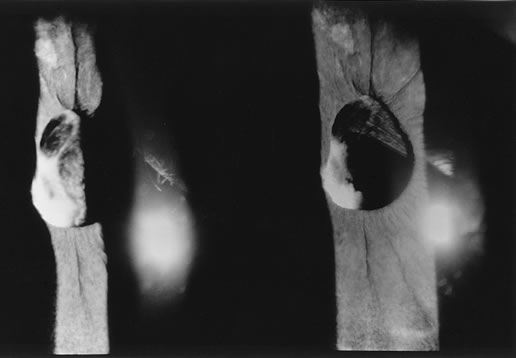 Streak retinoscopy, performed with the pupil well dilated, is helpful in determining the degree of opacification. In severe degrees of opacification, the red reflex may be diminished or absent. The posterior capsule can also be examined by using a slit lamp or by using the indirect ophthalmoscope as a light source and holding a 20D indirect lens close to the eye so that it serves as a magnifying lens. The hand-held portable slit lamp and the direct ophthalmoscope are other methods available to confirm the location and extent of opacification. These techniques are also used to judge the thickness of the secondary membrane. In children, the secondary membranes tend to become thicker with time. Estimation of the degree of thickness is important, because the thicker the membrane, the more energy it will take to photodisrupt it. Also, thick membranes will not retract as much as thin membranes. If the posterior capsule is thickened or the opacity is very dense, capsulotomy will need to be performed with either a discission knife or a vitreous suction-cutting device. Atkinson and Hiles suggested that the procedure should be performed within 3 weeks of the cataract surgery. Longer delays result in thicker membranes that require higher energy applications to perform the treatment. Recurrent membranes must be anticipated. In Atkinson's series, eight of 28 membranes required retreatment.29 When membranes recur, they are treated by repeating the procedure. |