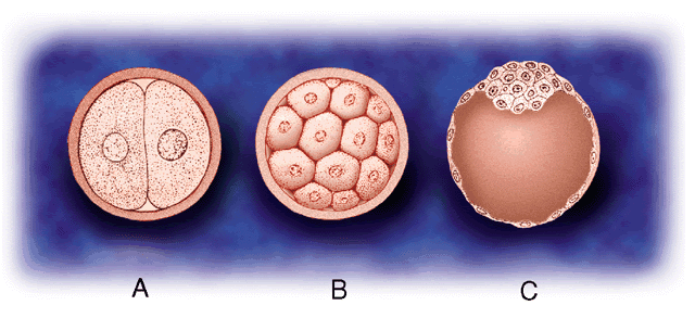 EARLY DEVELOPMENT OF THE EMBRYO A general understanding of the development of the embryo facilitates an understanding of the development of the eyelids. The fertilized ovum is the original cell, which undergoes several divisions to form a solid clump of cells called a morula. The morula then enlarges and forms a central cavity, to become known as a blastula or blastodermic vesicle (Fig. 1). The outer wall of the blastula forms the placenta. The blastodermic vesicle embeds itself in the uterine mucosa, enlarges, and forms two cavities—each with a single layer of cuboidal epithelium. The upper cavity is the amnion, the lower is the archenteron or yolk sac. The embryo develops from the embryonic plate at the area of contact between the two. At this stage, the embryonic plate consists of two layers: an outer or dorsal ectoderm (epithelial lining of the amnion) and an inner or ventral entoderm (epithelial lining of the yolk sac). A central depression (the primitive streak) followed by a groove develops on the ectodermal surface of the embryonic plate. A middle layer (intraembryonic mesoderm) appears, thus dividing the embryonic plate into three germinal layers from which all tissues of the body develop. The neural groove closes to form the neural canal (24th day). The surface ectoderm within the neural canal is known as the neuroectoderm.1–3