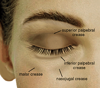 pretarsal skin. In the Asian eyelid, the superior palpebral crease is