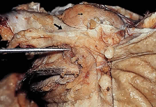The other pathway is that of the parasympathetic secretomotor fibers. Preganglionic parasympathetic sensory fibers of the facial nerve pass through the geniculate ganglion without synapse and course into the middle cranial fossa as the great superficial petrosal nerve. They join with the great deep petrosal sympathetic nerve from the internal carotid plexus to form the vidian nerve. Fibers then pass into the sphenopalatine (pterygopalatine) ganglion and synapse. Postganglionic parasympathetic fibers are sent with the zygomaticotemporal (CN V2) and the lacrimal nerve (CN V1) to give parasympathetic secretory function to the lacrimal gland. SYMPATHETIC SUPPLY TO THE EYELIDS The sympathetic supply to the superior and inferior tarsal muscles is controversial.53,54 Sympathetic nerves to the orbit provide vasoconstriction, smooth muscle function, hidrosis, pupillary dilation, and pilomotor and sweat gland function of the skin of the face. The sympathetic nerves arise from the carotid plexus and enter the cavernous sinus sheathing the intracavernous carotid artery. Within the cavernous sinus, sympathetic fibers join the nerve branches and arteries entering the orbit. Sympathetic innervation may reach the tarsal muscles through a combination of roots: with the (1) levator muscle, (2) marginal vascular arcades, (3) perivascular plexus of arterioles of muscles, (4) motor nerves of the ocular motor muscles, or (5) sensory nerves. Clinically, interruption of the sympathetic nerve fibers may result in Horner's syndrome, with vascular dilation, ptosis, anhidrosis, miosis, and heterochromia. |