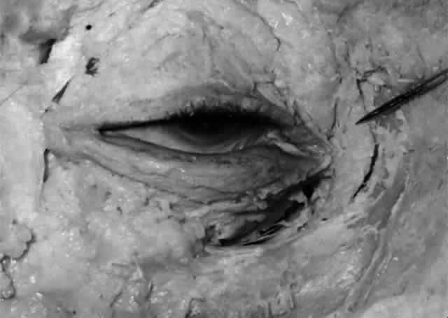 of the pretarsal orbicularis muscle; (2) the deep heads of the preseptal