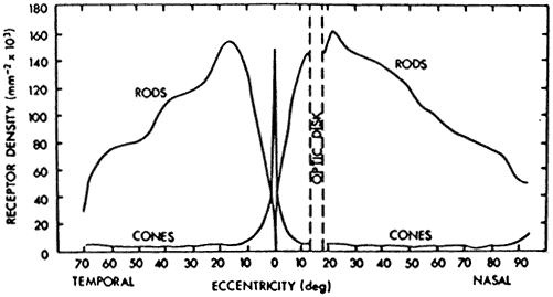 CONE AND ROD DISTRIBUTION ACROSS THE HUMAN RETINA |