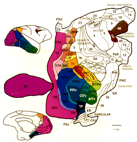 to another visual area of the monkey, area V4. Like V1, the ventromedial
