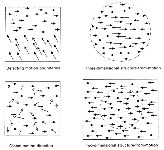 with the lateral occipital sulcus.330 Other areas that also show changes during motion perception include V1, V2,329,330,331 and the dorsal cuneus, which may correspond to V3,330,331 among others. Viewing of optic flow increases blood flow in the dorsal