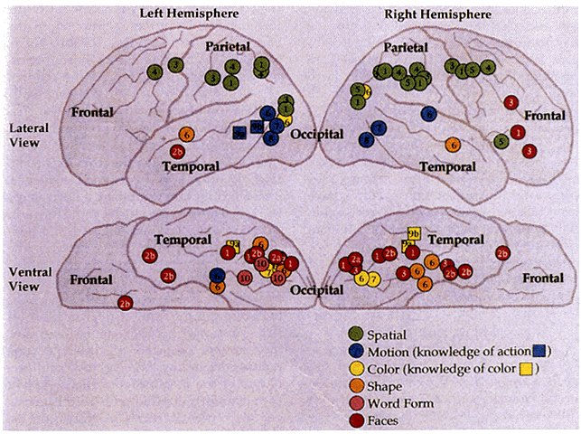 of color, luminance, static stereopsis, and pattern recognition. Regions